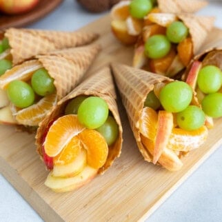 Ready for a fun, healthy, and festive treat for Thanksgiving? Create a fun display for your Thanksgiving table with these Fruit Cornucopias. Waffle cones...