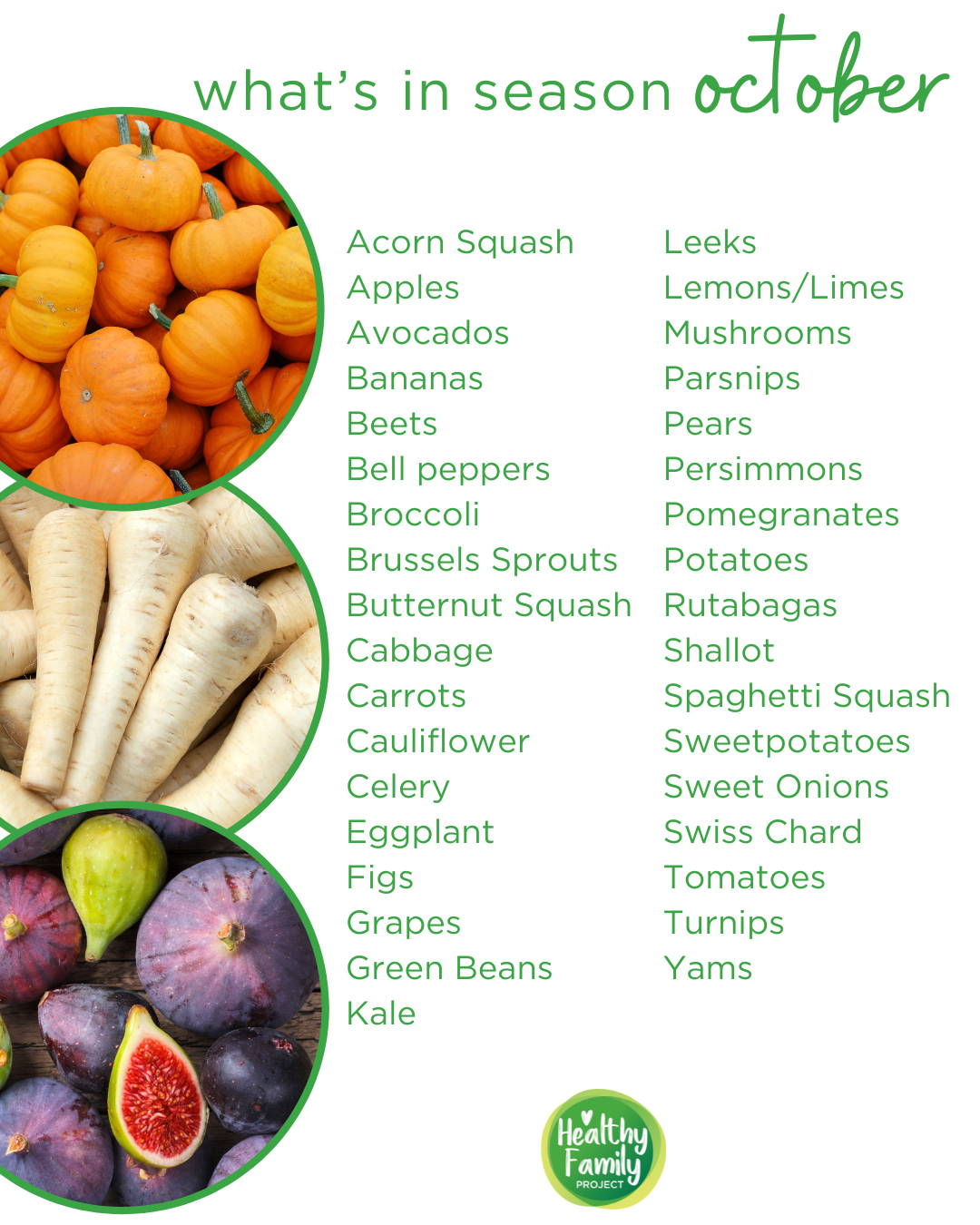 Happy October! The leaves are turning brown, Halloween decorations are popping up all over the neighborhood and a plethora of fresh fruits and veggies are in season at a grocery store near you!